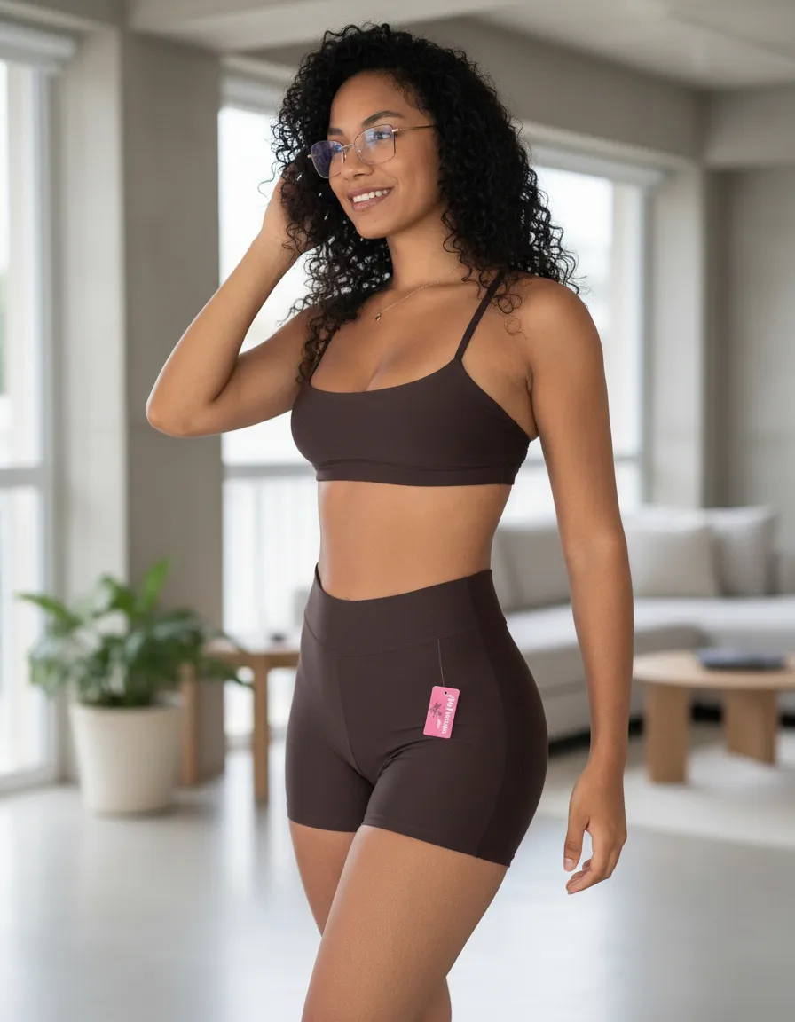 Kit 2 Tops Com Fecho + 2 Bermudas Moda Fitness Academia
